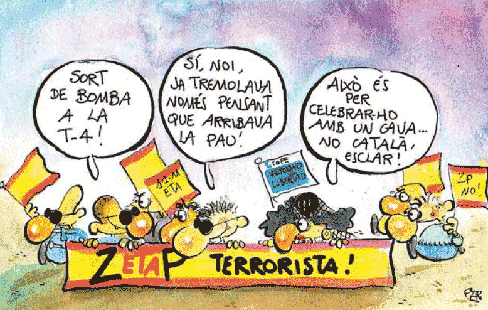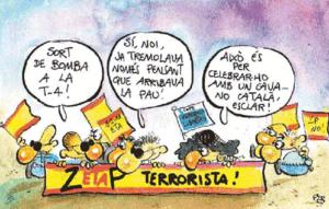 La Brunete mediàtica carrega un cop més contra l’Avui. Si fa poc la va emprendre contra el columnista Iu Forn, ara ho fa contra el ninotaire Fer i “els responsables del diari” per una vinyeta apareguda a la secció d'opinió. L’Asociación de Víctimas del Terrorismo ha posat el crit al cel per l’acudit, considerant “inconcebible” que un mitjà de comunicació es burli de “la majoria de la ciutadania espanyola, que ha expressat en diferents ocasions el seu respecte i suport a les víctimes del terrorisme”. La reclamació de l’AVT ha sigut aprofitada immediatament pels mitjans de la caverna per tornar a insinuar –un cop més– que l’Avui fa nosa i s’hauria de clausurar.