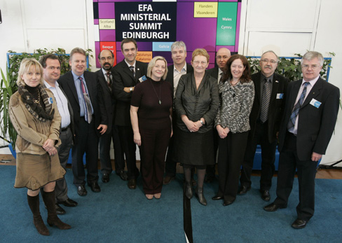 La foto inclou els signants de la 'Declaració d'Edimburg', els principals líders de les formacions independentsites de Gal·les, Catalunya, Euskadi, Flandes i Escòcia. La Declaració, feta una vegada constatat l'augment de l'opció independentista entre la població de les nacions sense estat, inclou diversos acords com ara potenciar el treball conjunt per aconseguir que les nacions sense estat siguin reconegudes com a membres de ple dret de la Unió Europea per tal d'aconseguir entre d'altres aspectes que els ciutadans d'aquestes nacions se sentin més propers a pròpia UE