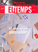Si bé ho podrien ser gairebé tots, el número 1.216 del setmanari El Temps -sortit aquest dimarts als quioscos- és d’aquells que val la pena guardar. Com sempre, El Temps aporta bones eines per a una interpretació seriosa de la realitat social, cultural i política dels Països Catalans, i aquesta vegada aborda la qüestió d’un referèndum com a expressió del dret de decidir de les nacions sense Estat a Europa. Amb la recent proposta del lehendakari Ibarretxe i alguna de similar a casa nostra sobre la taula, el setmanari va més enllà i dóna a conèixer als lectors l’opinió d’importants personatges d’altres pobles europeus.