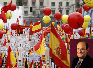 I a Madrid, un PP sense careta, fa una manifestació ultranacionalista espanyola en què acaben fent sonar el himno nacional. Un recordatori d'aquelles places d'Oriente del generalíssim.