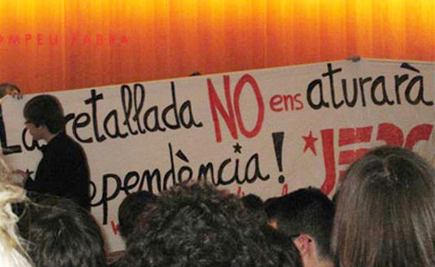 Durant l’acció simbòlica, els membres de les JERC han desplegat també una pancarta amb el lema “La retallada no ens aturarà. Independència”, per mostrar la seva disconformitat amb la presència del dirigent espanyol a Catalunya.