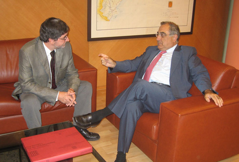 El conseller de Política Territorial i Obres Públiques de la Generalitat de Catalunya, Joaquim Nadal i el conseller de Mobilitat i Ordenació del Territori del Govern de les Illes Balears, Gabriel Vicens, s'han reunit aquest dijous, per primera vegada, per tractar sobre diferents aspectes de les infraestructures catalanes i balears, que poden condicionar el desenvolupament futur d'ambdues realitats. Nadal i Vicens -exsecretari general del PSM- han intercanviat impressions del futur de la gestió aeroportuària i del paper que han de jugar-hi els governs autònoms, en la que és la segona reunió entre responsables polítics catalans i balears, després que Pueyo i Tous es reunissin a finals d'agost.