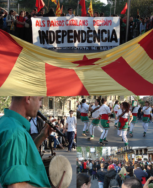 La manifestació i acte polític d'Esquerra Independentista del Barcelonès qui agrupa diversos col·lectius, celebrat ahir a la tarda, es va desenvolupar pacíficament amb aire festiu però sobretot reivindicatiu. Les consignes més proclamades reclamaven la independència del Països Catalans però també es van deixar sentir crits en contra del transvasament i l'actuació dels partits majoritaris. Les prop de 600 persones van sortir a les 19h de Plaça Universitat, després d'una actuació bastonera, van baixar per la Rambla i la Plaça Sant Jaume per acabar a la Plaça del Rei. Allà dos portaveus d'Esquerra Independentista van llegir els seus manifestos on reclamen la reafirmació lingüistica i nacional de Salses a Guardamar.