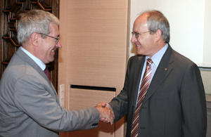 El president de la Generalitat catalana, José Montilla, va rebre dimecres el president d’Òmnium Cultural, Jordi Porta, que anava acompanyat dels vicepresidents Josep Colomer i Joan Abellà. Els representants de la junta d’Òmnium van explicar al president català la situació actual de l’entitat, la seva estratègia i els seus programes de defensa de la llengua, la cultura i el país. /FOTO: Rubén Moreno.