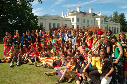 FOTO: Contingent català al 21è Jamboree escolta mundial, a Anglaterra, el 3 d’agost passat, amb el secretari general de l’escoltisme mundial, Eduardo Missoni; el president del Parlament Ernest Benach; i els diputats Irene Rigau (CiU), Carles Campuzano (CiU), Daniel Font (PSC), Patrícia Gomà (ERC) i Salvador Milà (ICV).